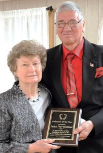 Patricia “Pat” Strickland, left, was presented Volunteer of the Year honors from Curtis “Tiger” Lovette. (Deuce Niven, TLT)