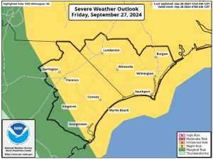For coastal Horry, the weather threat appears a bit more severe, Thursday morning National Weather Service forecasts and models show. The HCS announcement said “Horry County is under a tropical storm warning and could see wind gusts up to or in excess of 40 MPH winds on Friday morning, with safety concerns involving student transportation cited as the reason for calling an eLearning day.