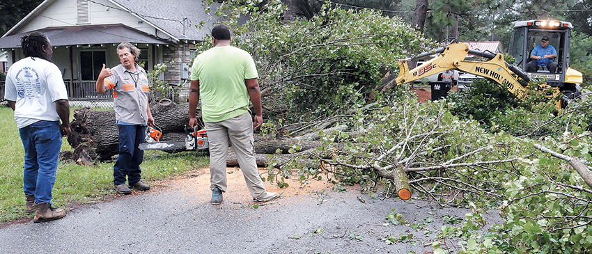 Tabor City Fire Department and Town of Tabor Public Works’ crews responded to multiple calls of trees and limbs down, some across power lines, for more than three hours starting about 7 a.m.